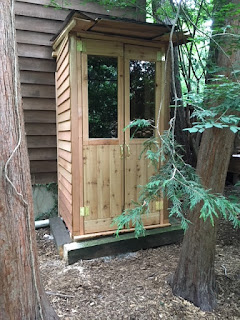 Shed 1 was built near the garage to store snow tires and MK's collection of wood. Notice how it's custom-built into the hill and has a variety of doors with custom latches.